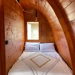 Der Innenraum ist mit einem Sofa möbliert und bietet zudem einen Blick auf den Garten. Die The Tiny Black Bird verfügt über ein Badezimmer mit einer Dusche. Handtücher gehören auch zu den Badezimmern.