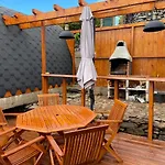 Wystrój wnętrza obejmuje sofę oraz widoki na ogród. W łazience znajduje się prysznic. W łazienkach znajdują się również ręczniki.